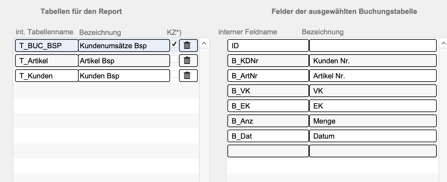 Hoher Bedienkomfort. Sämtliche für einen Report benötigten Feldnamen werden nach Eingabe der Tabellen vom Tool ausgelesen. Damit können zur Definition der Reports alle gewünschten Feldnamen durch einen Klick ausgewählt werden. Dies gewährleistet eine schnelle und vor allem fehlerfreie Erstellung neuer Reports.